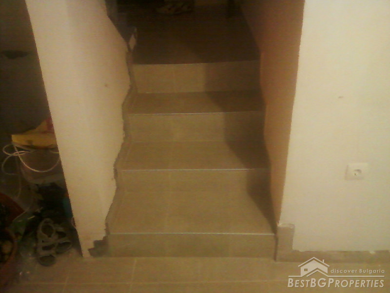 The house consists of two floors: 1st floor - hallway, toilet, bathroom, room, kitchen + dining. Second floor: hallway, toilet, bathroom, 3 bedrooms, balcony, internal staircase. There is a possibility of building a third floor. The roof is finished with tiles, the condition is very good. The construction between the floors is solid, and the walls are brick / stone. Flooring: terracotta, laminate 8mm. Walls: plaster, latex.