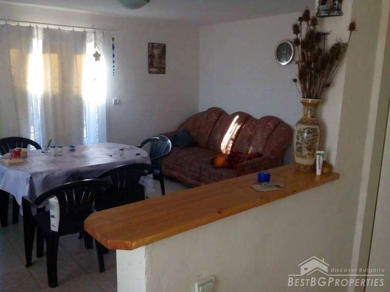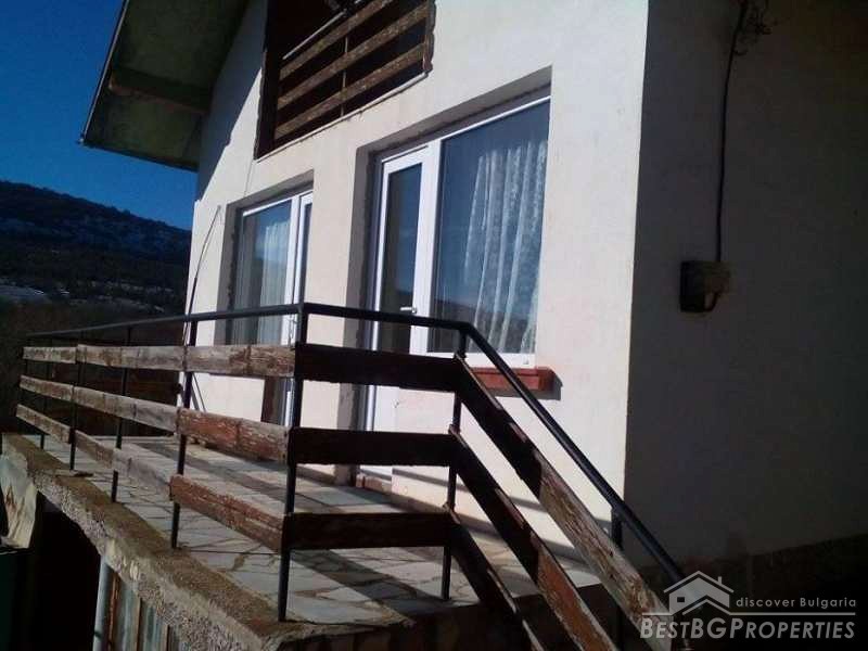 The house is solid, brick, with year around access. It has three floors and total living area of 85 sq m. The distribution inside is the following: First floor - kitchen, living room and a bathroom. Second floor - two rooms and a terrace. Third floor - a large room with slight slopes.