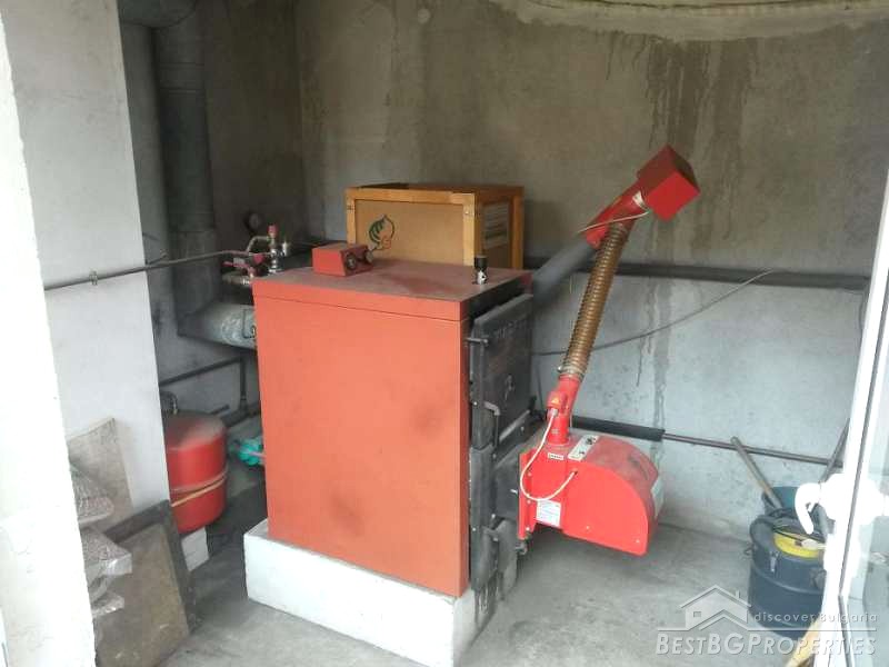 The house has two floors and total living area of 200 sq m. It is equipped with central heating - boiler with pellets (or wood), electric boiler, there is air conditioning in every room, solar panels for the hot water, water pump and drainage, generator for electricity. There is three-phase electricity, alarm and video surveillance. The house is sold fully furnished. It benefits with two bathrooms and a large veranda on the second floor.