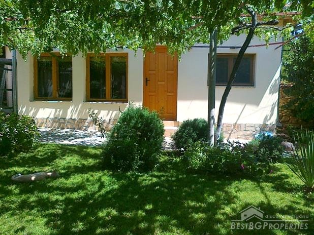 The yard is 500 sq m. It is surrounded by a solid wall. The house and the yard are in excellent condition. There are 20 fruit trees and vines.