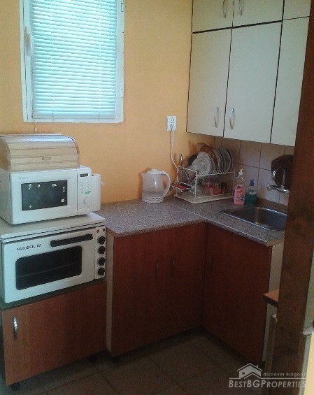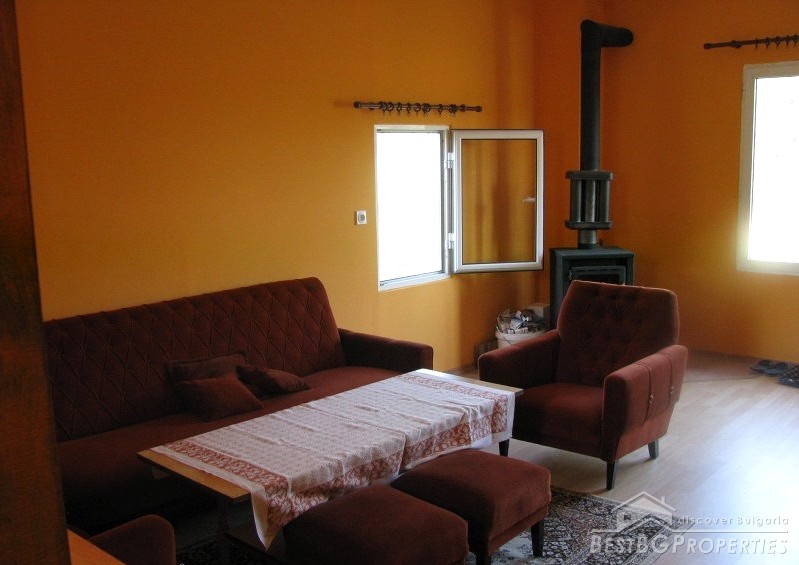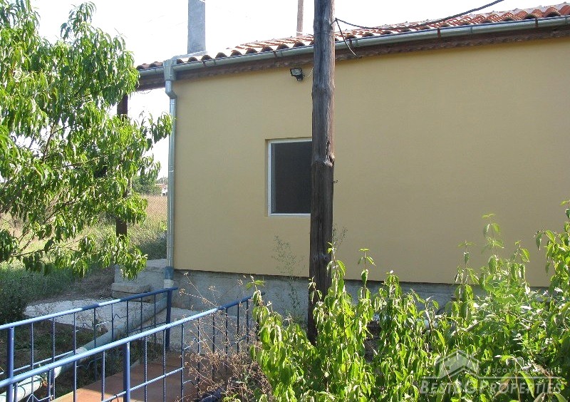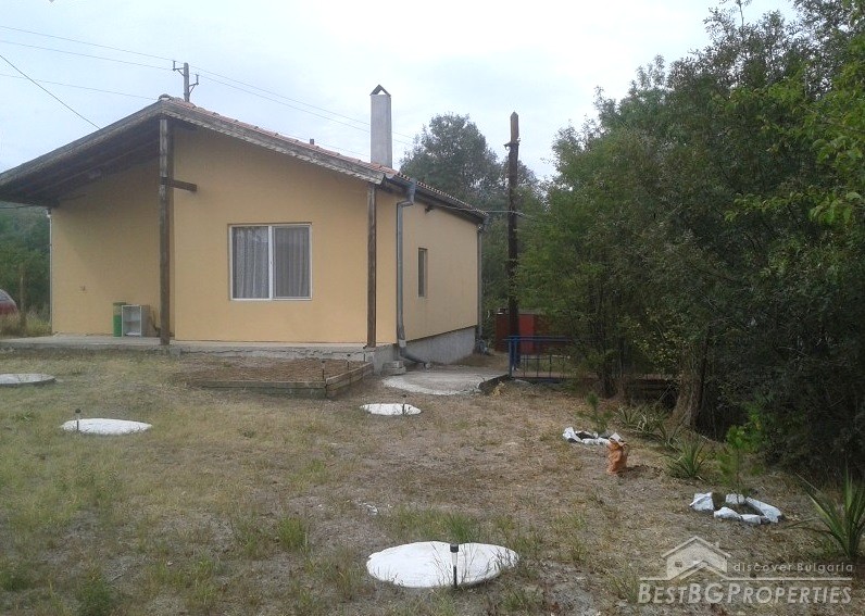 The house is newly built. It is single storied with area 60 sq m. The house consists of two bedrooms, living room, kitchen box, bathroom and WC. It is offered fully furnished and ready to move in. The property is built on a plot of land with size 380 sq m. In the yard there is also a second building – a bungalow consisting of three rooms.