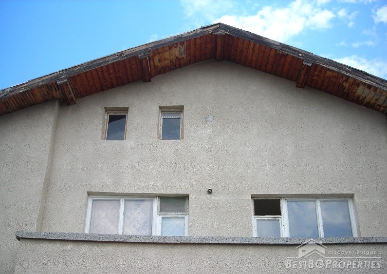 The house comprises of two floors each with area 104 sq m. There is also a third attic floor again with size 104 sq m. Each floor consists of three rooms, kitchen box and a bathroom with WC. The house is generally in good condition and there is some furniture.