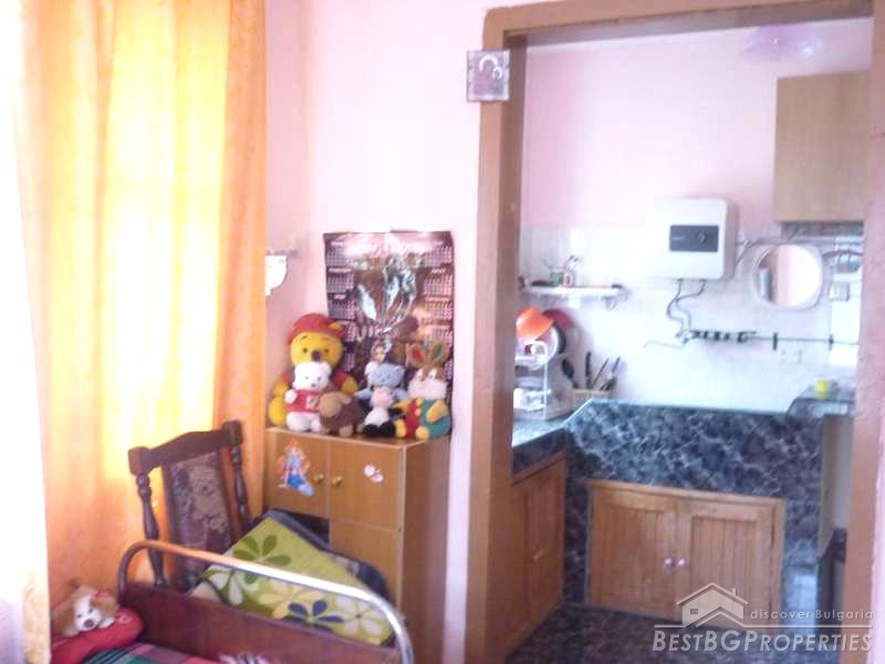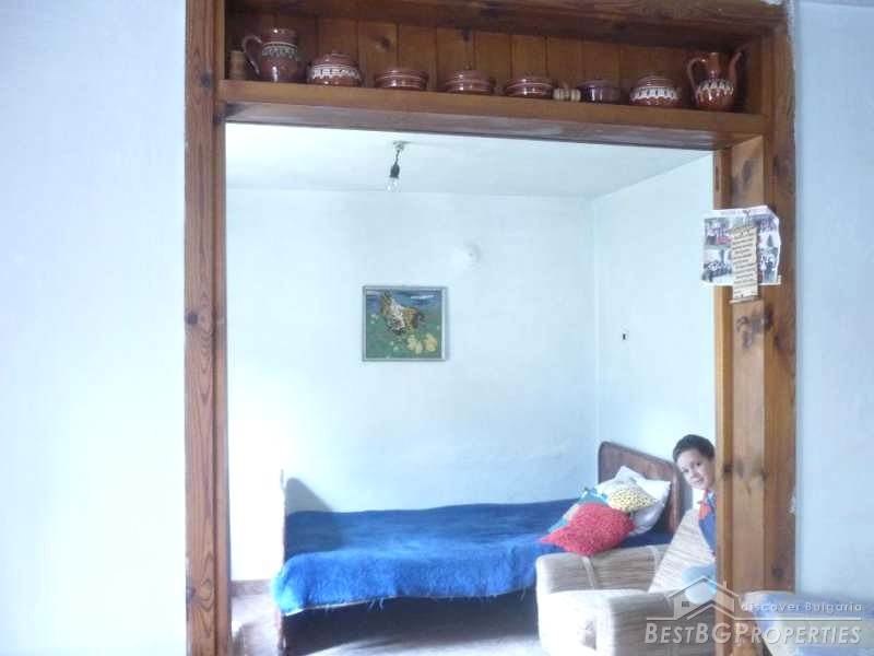 The house is two-storey with area 130 square meters plus two basements. It is fully habitable and suitable for living. The house includes two bathrooms, two toilets and two terraces. The garden is with area of 520 sq m. In the yard there is also a large agricultural building with wood shed (45 sq m), a fireplace, parking spaces, a large walnut tree and other greenery.