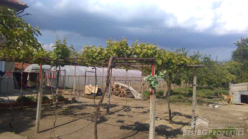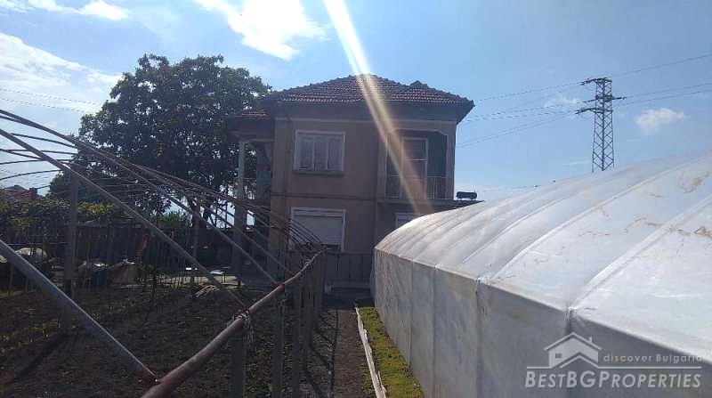 The house has total living area of 180 sq m. It is built on a huge plot of land with size 2000 sq m. The parcel includes a garage, greenhouse, additional farm buildings and a large garden with area 1500 sq m. This property is perfect for agriculture. There are vines, numerous fruit trees, well for irrigation.