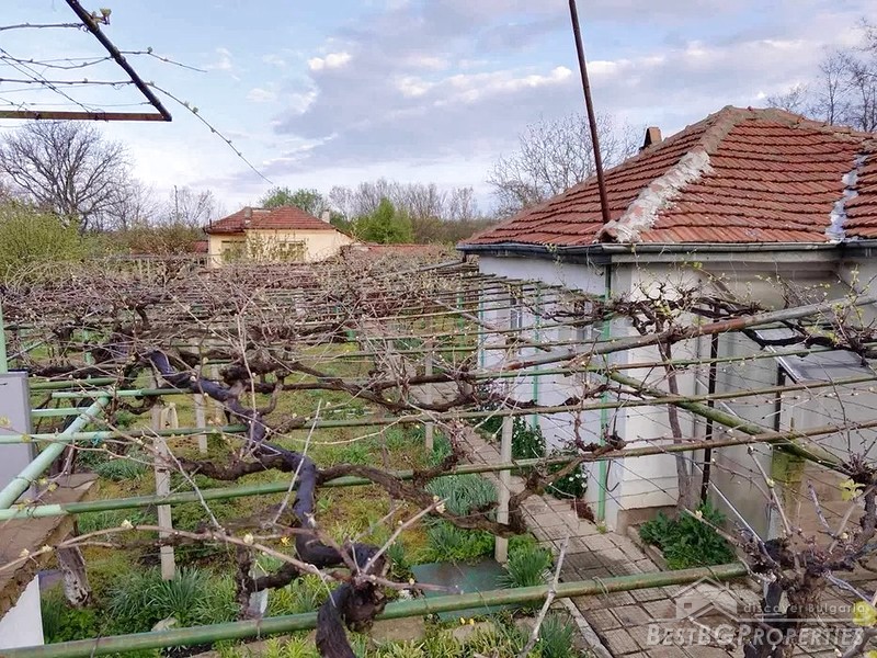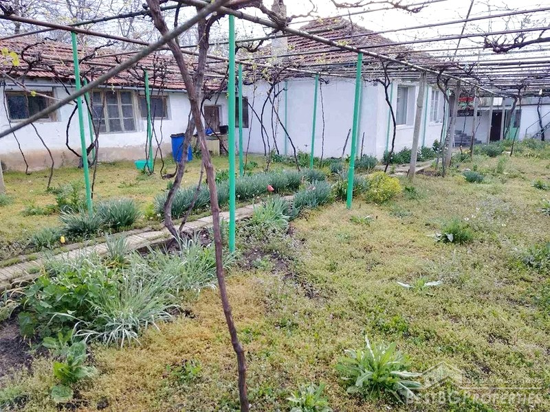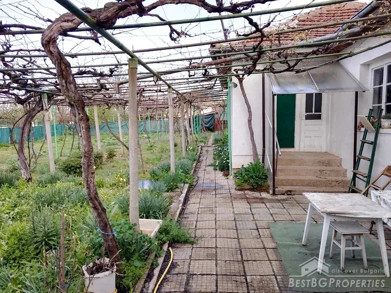 The property benefits with a cultivated green garden with many fruit trees and vineyards. There is an external kitchenette with a sink and a toilet. The yard is fenced from all sides. The property stands on an asphalted road.