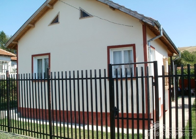 First floor consists of 2 bedrooms, kitchen, hallway, bathroom and a terrace. The rooms have wooden floors, hallway and bathroom - tiles. Second floor - 2 bedrooms, cellar and a storage room with oven. There is also another small fireplace in one of the rooms. The house is half furnished. The first floor is ready for living. There is an opportunity for installing a local heating. The roof and the wooden columns are fully replaced. The ceilings are with plasterboard and isolation. The attic is warm and with hydro insulation. Walls - outside and inside plaster and latex.