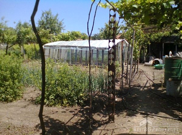 The offered house is single storied, has total living area of 100 square meters. It sits on a plot of land with size 900 sq m. The house has two separate entrances with porches, 5 rooms plus a large corridor, kitchen, bathroom, and a basement. Additionally outside there is a garage, large garden and agricultural outbuildings.