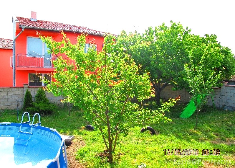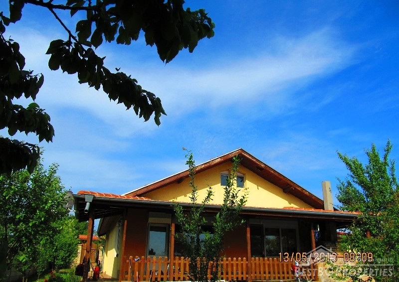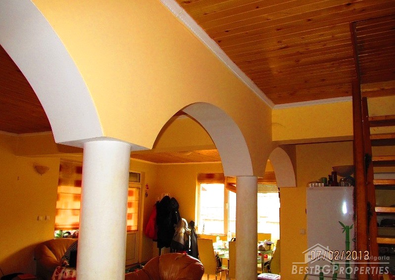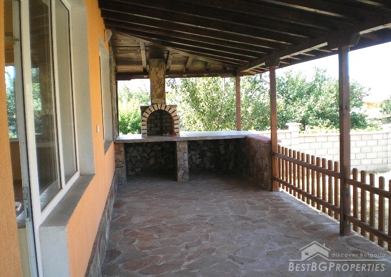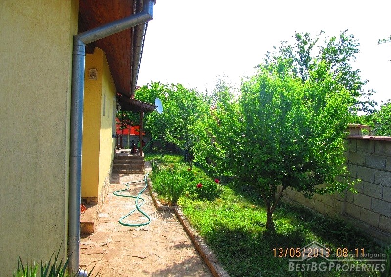 The property is situated in a very well developed village just 5.5 km from Dobrich and 25 km from the famous seaside resort - Albena. The house has one floor + a mansard. It has total living area of 200 sq m and comes with yard with size - 620 sq m. It consists of 4 bedrooms and a spacious kitchen and living room - 48 square meters. There is a fireplace, automatic boiler, PVC window joineries, all communications. Outside there is a large veranda with barbecue area, garage, storage room. There is inside bathroom and WC.