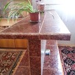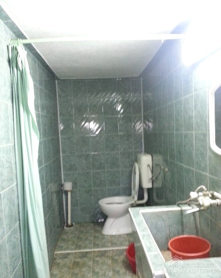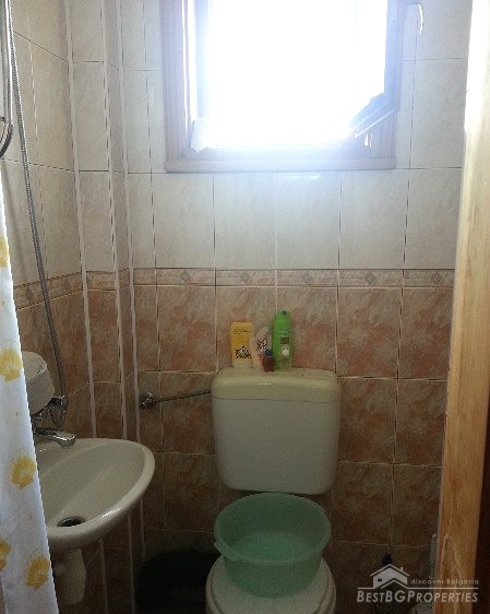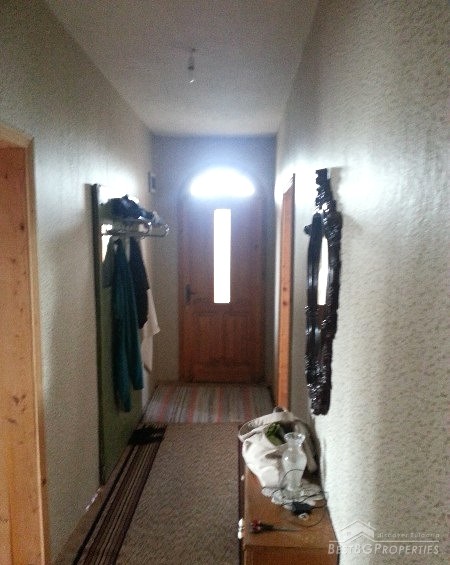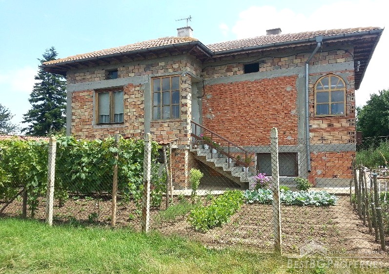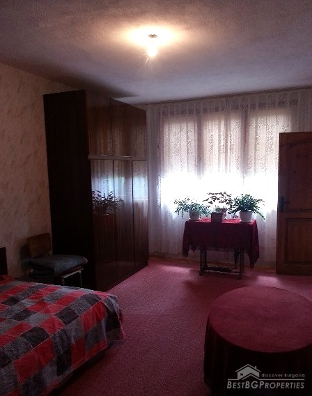 The house was built in 2001. It needs some finishing works including outside plastering. It has two floors and a total living area of 200 sq m. There is also a separate garage. The house comes with double window joinery and full furniture. Each floor has a bathroom and a toilet. On the second floor there is a balcony to both bedrooms. The roof is in perfect condition. The attic is large enough to be used for additional room.