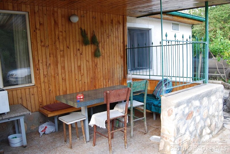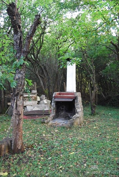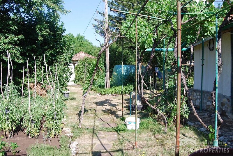 The property sits on a flat, well-maintained plot of 1250 sq m., consisting of two adjacent regulated parcels. The yard features fruit trees, an outdoor fireplace, and an external toilet. Additional buildings in the yard include a workshop and a storage room.