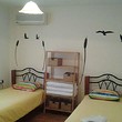 The house has two floors and total living area of 150 sq m. The layout inside is as follows: On the first floor, there is a fully equipped kitchen and a living room with luxurious sofas, plasma TV and a fireplace. Both rooms have air conditioners. There is also a bathroom with tub and toilet.