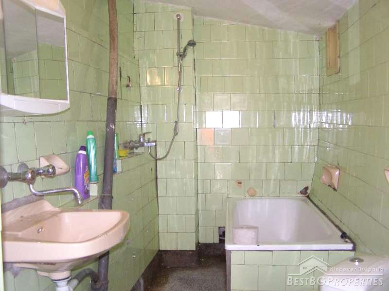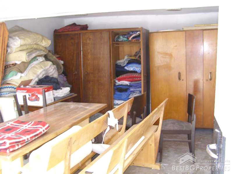 The house has total living area of 64 sq m and a yard of 692 sq m. It is on two floors. The ground floor consists of two basements and one room. The second floor has four rooms. The bathroom and toilet are outside, adjacent to the house. There is also a garage - 23 sq m.