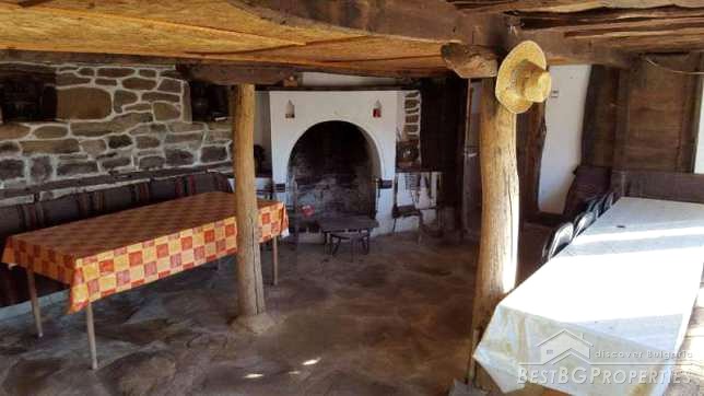 The house has total living area of 160 sq m and the following distribution: on the first floor there is a tavern for 20 seats with mountain views, large fireplace, bathroom, kitchen, basement and a separate private room with toilet and a bathtub. The second floor consists of a terrace with panoramic views, a corridor, one triple room, four double rooms and two bathrooms. The rooms are fully furnished with new furniture. Water is supplied from a large tank.