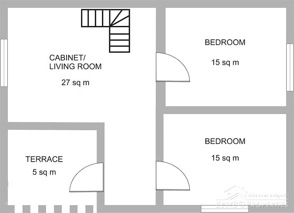 On the Upper Floor there are: one cabinet or another living room, where the staircase is and two more bedrooms. There is one small balcony on the upper floor with very nice view. The bedrooms on this floor are with beautiful authentic wooden floors.