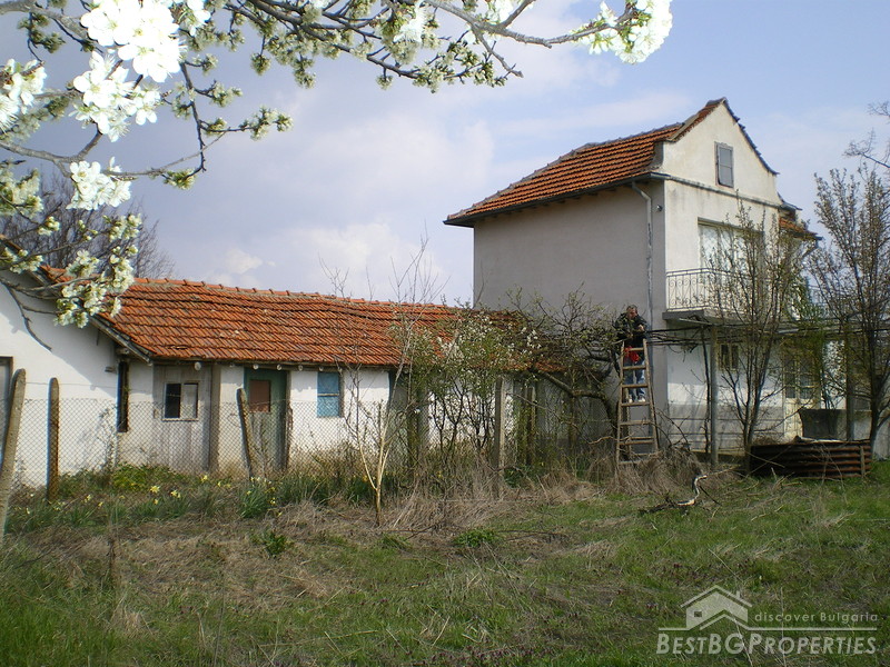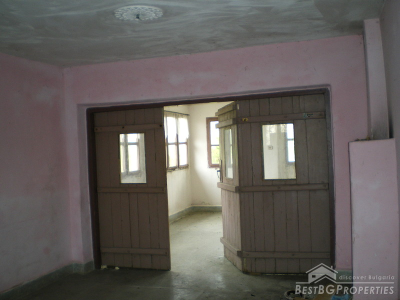 The property consists of a large plot of land with size 2000 sq m and a house built on it with living area - 100 sq m. The yard is overgrown with much greenery and fruit trees and also includes a barn of 57 sq m in size - attached to the house and which could extend the property. The accommodation comprises: Ground floor with a small village tavern/restaurant, conservatory, shower room and kitchen. An external stairs lead up to the second floor where there is a further 2 rooms and a balcony. The toilet is outside and there is also a garage. The restaurant is not active for many years. The property is connected to mains electricity, water, telephone and has a well 3 m diameter and Septic tank.