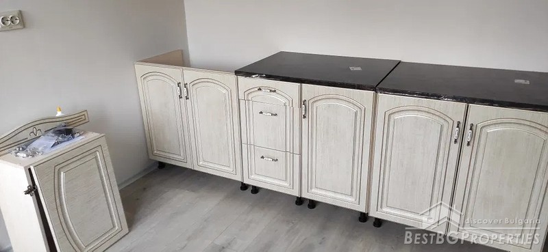 The bedrooms are furnished with beds, wardrobes, bedside tables, there are blinds on the windows. The kitchen has kitchen cabinets. The heating is via 4 pcs. air conditioners. The interior doors are new, the front door is also new.