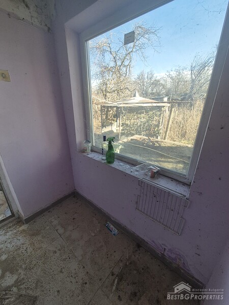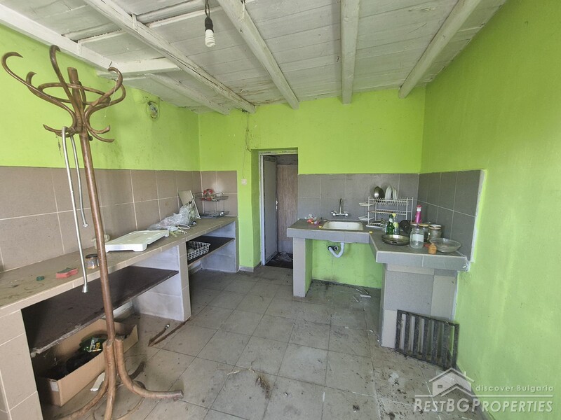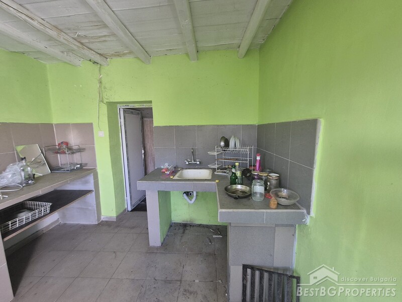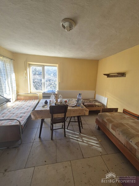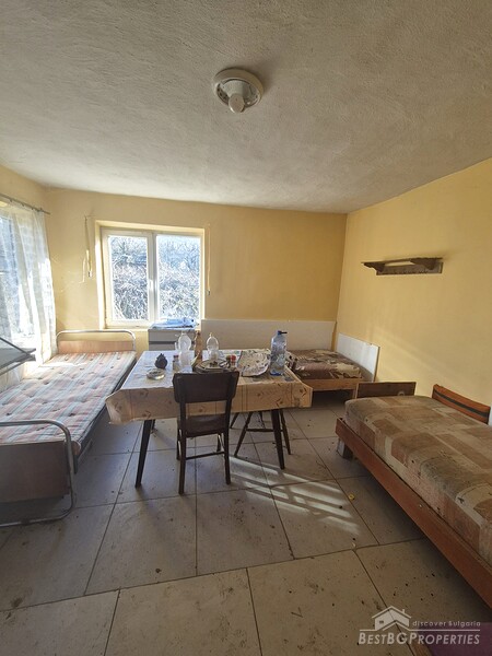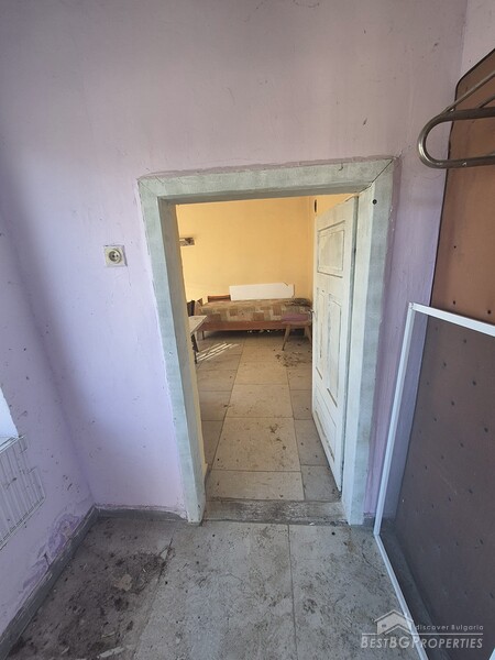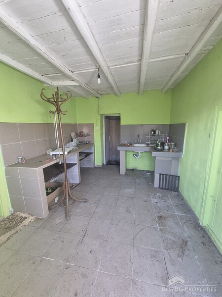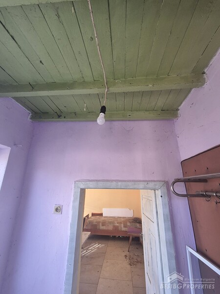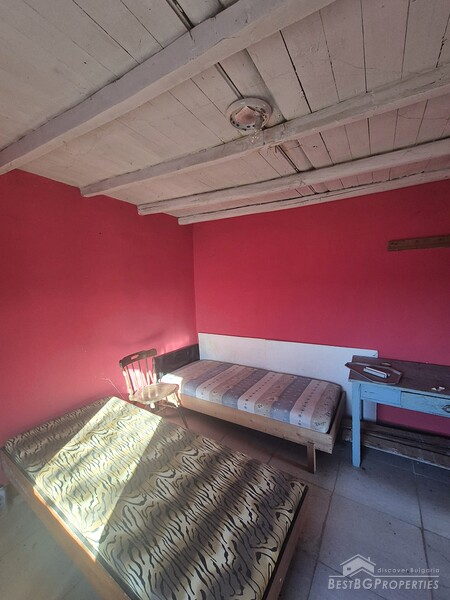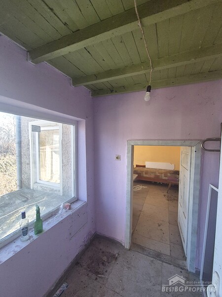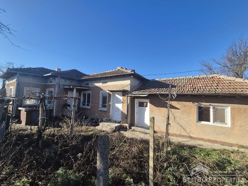 This charming one-story country house is located in the sought-after village, just 6 km from General Toshevo. The property features a large yard with outbuildings and a house with two entrances, three bedrooms, a living room, a kitchen with dining area, and a bathroom. The roof and windows have been replaced, and the house requires cleaning and refreshing.