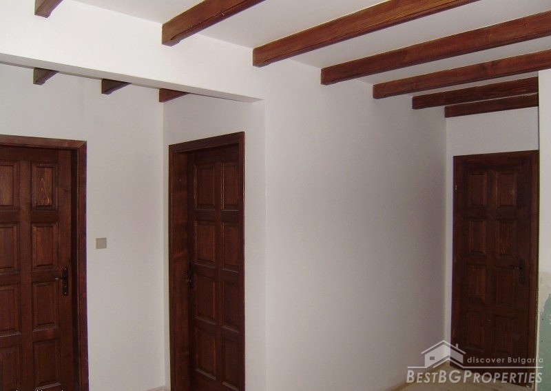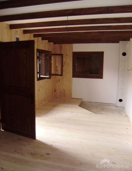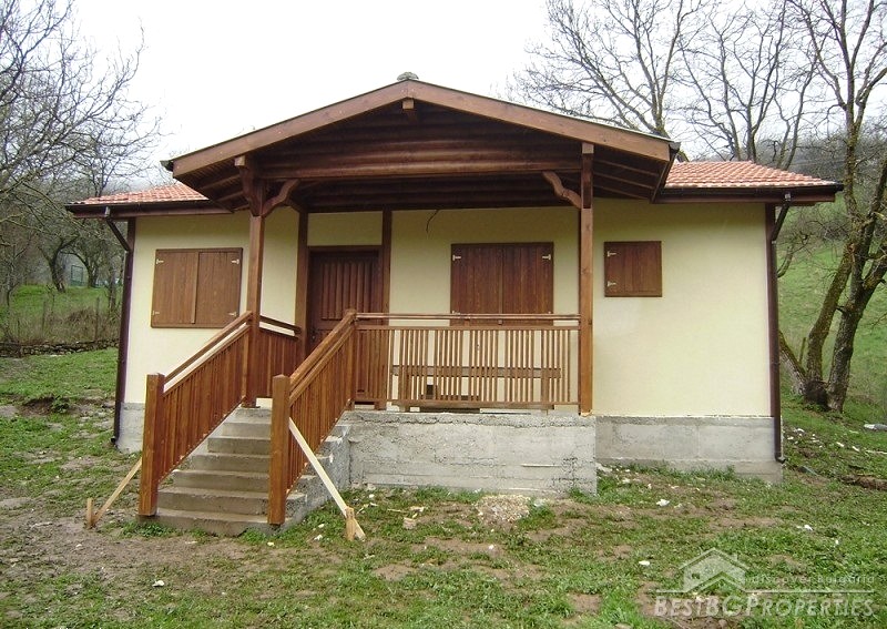 The house is single storied and consists of two rooms, bathroom, WC, closet, living room with kitchen box and a verandah. In total the whole living area is 60 sq m. The most part of the house is finished with wood - wooden floors and ceilings, wooden window joineries, wooden interior doors, wooden walls. The house is built on a plot of land with total size of 820 sq m - slightly slopped and with awesome views.