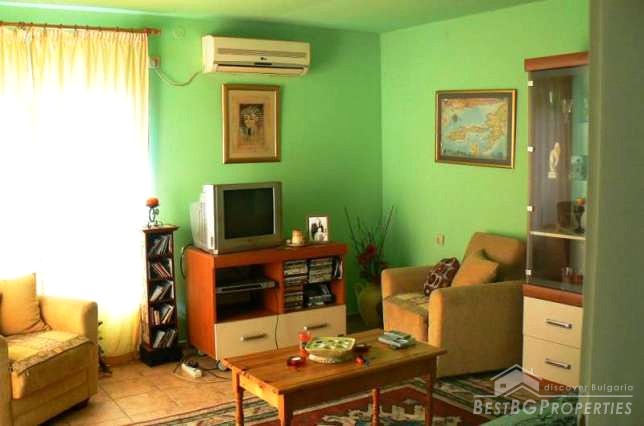 The house consists of two bedrooms, kitchen, WC, large entrance hall (lounge) with a window and stretch-sofa. It is furnished with modern furniture and equipment. All of the electrical appliances are included in the price. There is a possibility for internet and satellite TV. The total living area is 98 sq m.