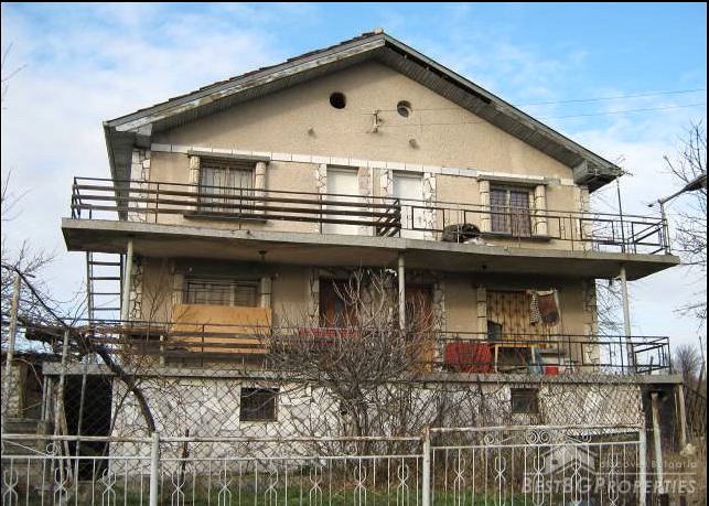 The house which is for sale comprises three floors two of which residential. The first, ground floor consists of a large basement. The second floor has two rooms and a corridor and two large balconies. The third floor also has two rooms, corridor and two balconies. Each floor has living area of 35 sq m and the total living area of the house is 105 sq m. It is built on a spacious plot of land 1000 sq m in size. The parcel also includes a brick built garage and another additional agricultural outbuilding. The yard comprises wines and few fruit trees. The house is for sale without the furniture.