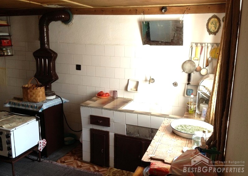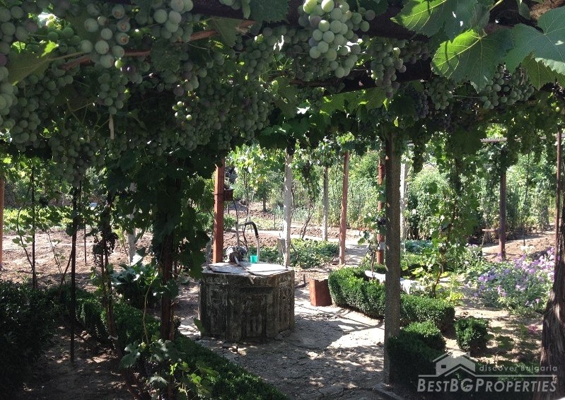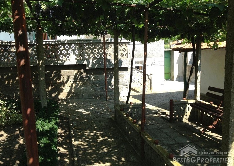The property is in very good condition and is sold with existing furniture. The yard is landscaped, planted with vegetables and fruit trees. In front of the house there is a metal structure with vines. The property is not far from the main central street, and stands on a maintained asphalted street. The house is connected to the sewer line.