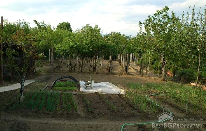 The house is on two floors. It benefits with new bathroom, new plumbing, a large garden with around 20 fruit trees, a large vineyard (550 sq m), water probe with compressor and water tank. The total living area of the house itself is 55 sq m and the size of the yard is 1000 sq m. The parcel is flat and surrounded with a fence. The house is sold with all of the furniture and equipment including an air conditioner.