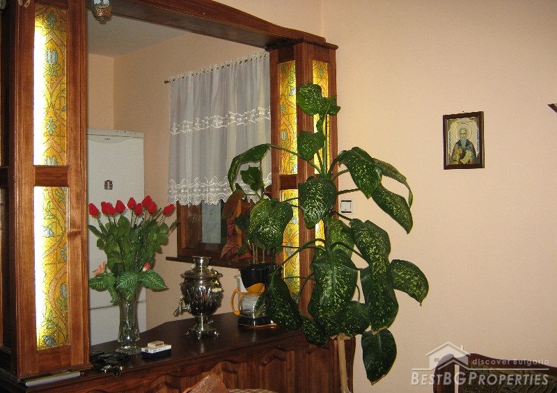 This is a two-storey monolithic house for sale located in a picturesque village 30 km north from Plovdiv and 14 km from the mineral resort Hissarya. The village is connected by a new quality asphalted road and there is also railway transport.