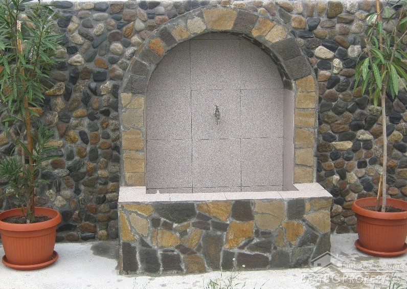 The house has total living area of 200 sq m distributed between two residential floors. It has the following distribution of the premises: the ground floor is fully furnished and consists of two bedrooms, living room with kitchen, fireplace, lounge, bathroom with toilet, and a 20 sq m verandah. The flooring is terracotta, laminate and faience. The second floor (unfurnished) comprises of two bedrooms, living room, kitchen and a terrace.