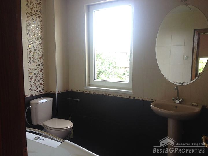 The house has two entrances - from the street and from the rear of the yard. The basement also has a security door. The property benefits with central heating with aluminum radiators and boiler De Dietrich. There is also a fireplace.
