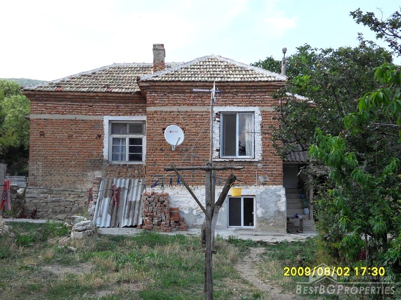 This is another rural, lovely house for sale located in a nice and calm village 26 km from the town of Karnobat. The distance to the city of Bourgas and the sea shore is 81 km. The closest International airport near Bourgas is 85 km away. The property consists of a house and a spacious yard. The house is built in the Old Bulgarian rural style entirely of brick and stone. It has a total living area of 90 sq meters spread among two floors. The first floor consists of a 1 room, big langue and a basement which can be easily reconstructed into another room. There is also a kitchenette with a sink situated on the first floor. The second floor consists of 2 rooms and a corridor. The bathroom with the WC is an outside one. The house is old and needs some renovation work, although it ready to move in right now. The floors and ceilings are wooden, the window frames are also wooden. The roof is covered with red tiles. There is a satellite TV antenna and phone lines. Electricity and water are supplied to the property. The yard is spacious, about 1300 sq m in size. It is beautifully arranged. There are different sorts of fruit trees growing on the plot, vegetables, corn and other plants. The property is surrounded by a wire fence. The access to the property is through a tarmac road.