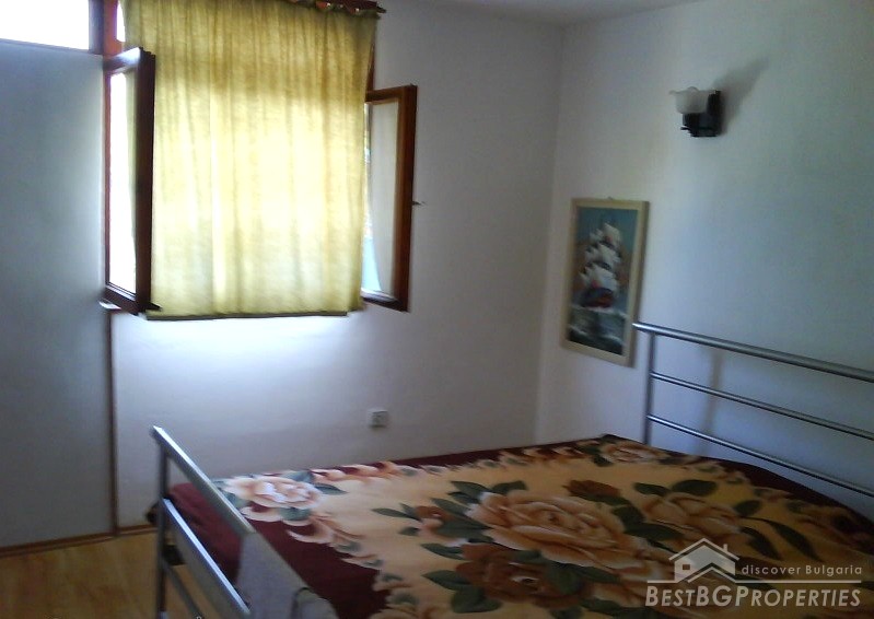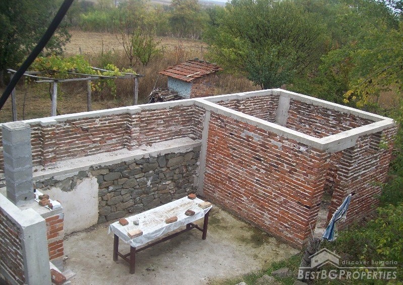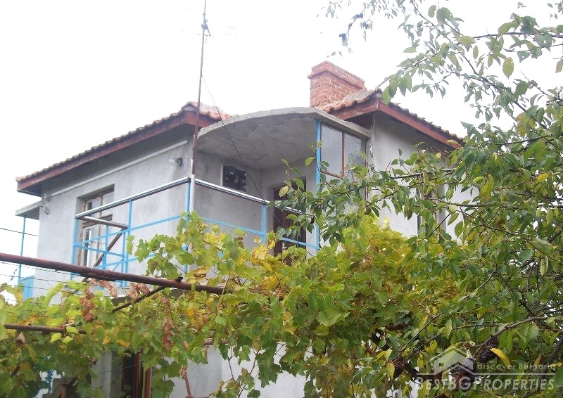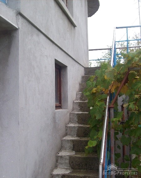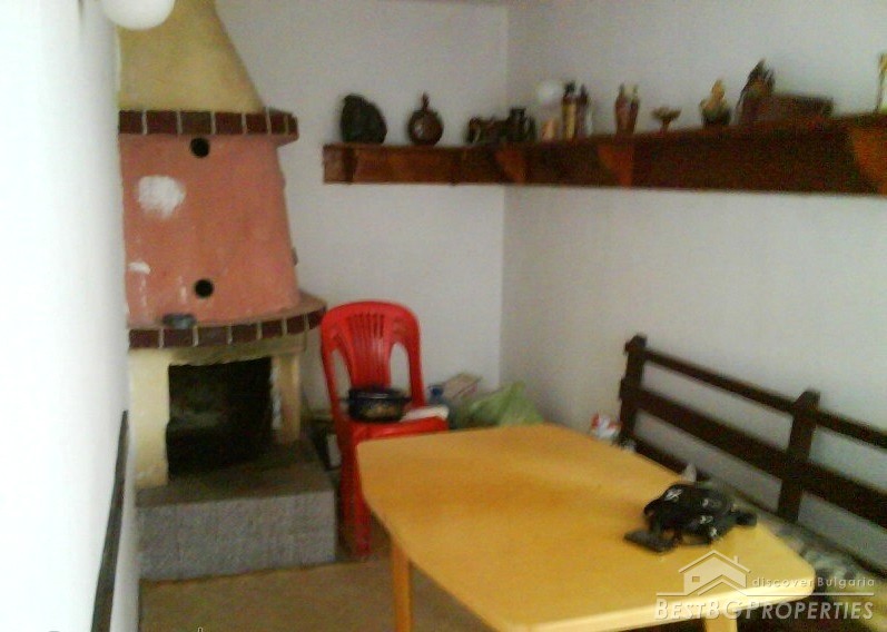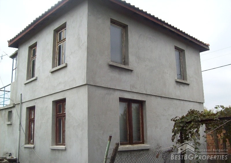 The offered house is two-storied, brick built, with external plaster. Each floor is with an area of 38 sq m. On the first floor there is a living room with fireplace, one bedroom, and a bathroom. The second floor consists of a one large room with balcony and two transitional rooms.