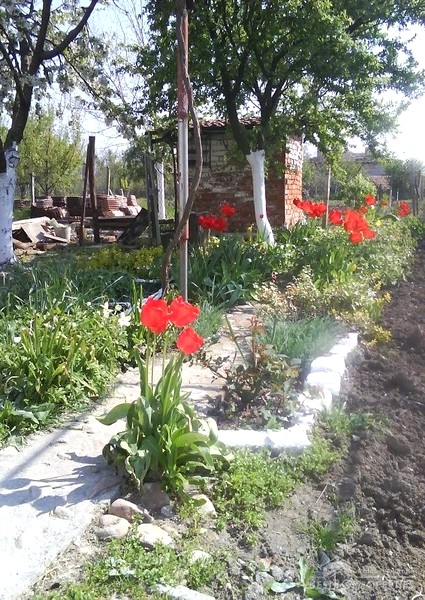 The plot is 700 sq m. In it there is a vineyard, vines and many fruit trees. There is a room for instruments and a BBQ (incomplete without roof), outside summer bathroom and WC.