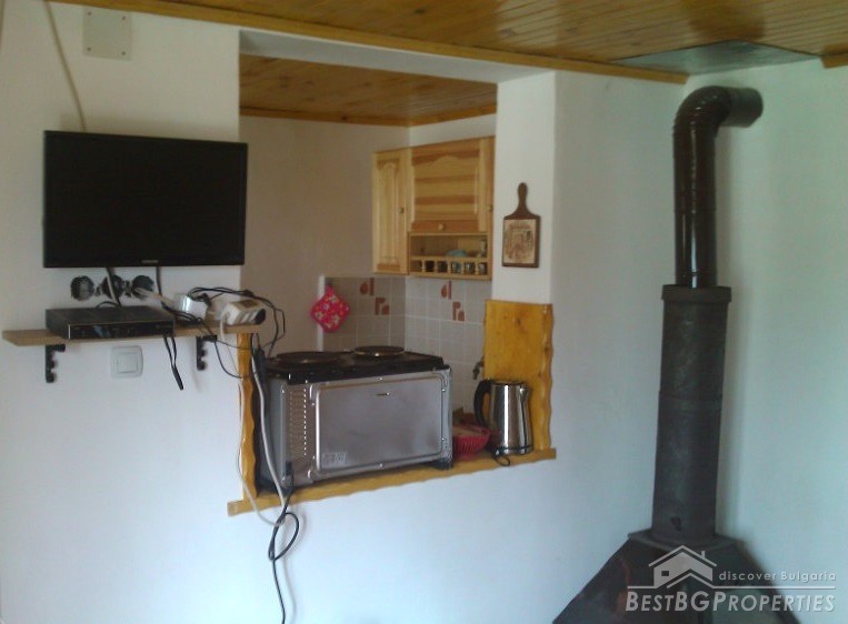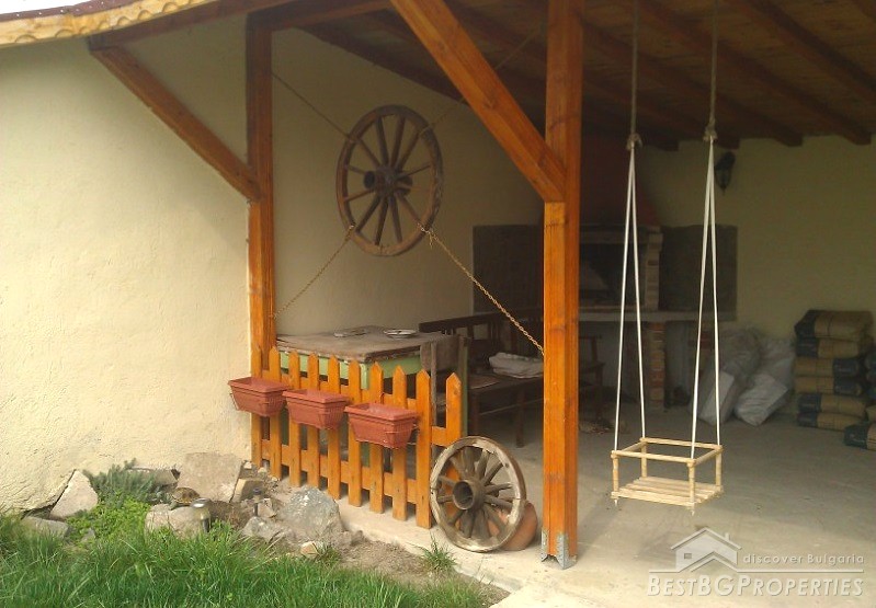 The house was finished in 2012 year. It faces a perfect asphalted road in the village center. The house consists of two bedrooms, a small living room, tavern, closet, barbeque and garage. It is fully furnished with quality furniture. The bathroom is inside the house.