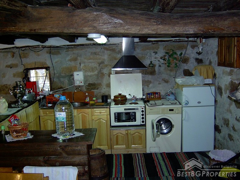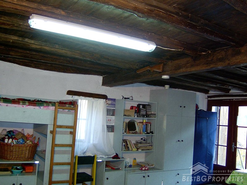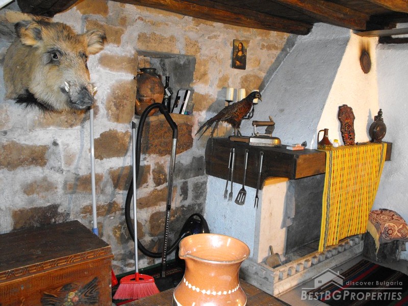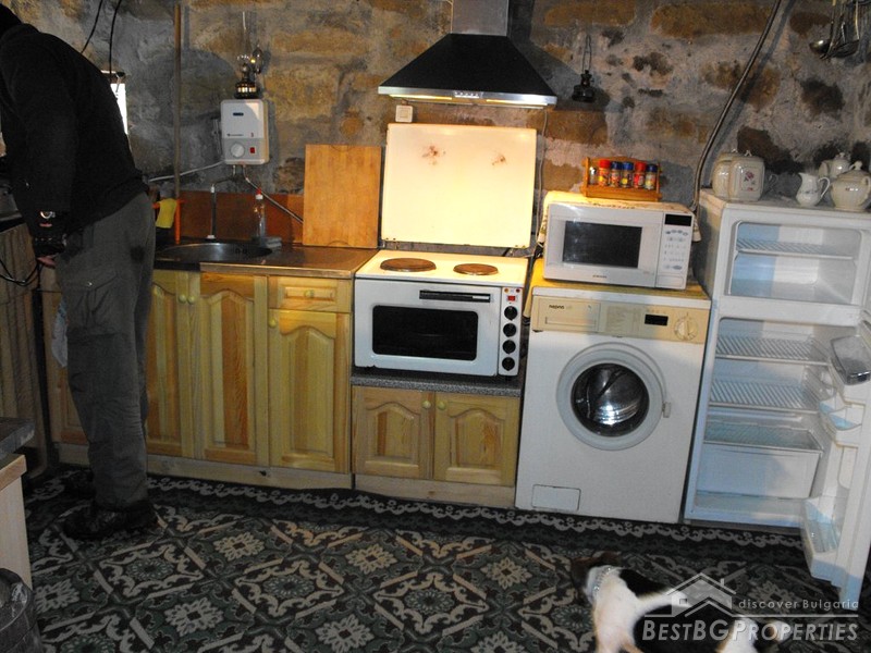 The house is two stories. The first floor is 50 sq m large made entirely of stone. The second floor is 70 sq m, wooden made. There is water and electricity provided in the property. The first floor comprises a fully furnished and equipped kitchen box. The kitchen includes floor heating, fireplace, TV, satellite TV, automatic washing machine, oven and other. The second floor is not furnished and in need of renovation. The house is built on a yard 500 sq m large. The property is neighboring a forest and a river, which provide perfect conditions for fishing or hunting. The house is for sale fully furnished and finished. An asphalted road connects the property with the village.