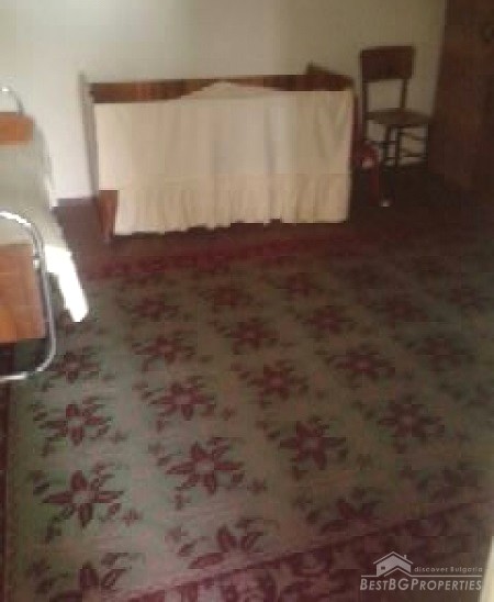 The house consists of 3 rooms - bedroom, living room and a closet. Adjacent to the house there are 2 more rooms - bedroom with kitchen and a room with 2 more beds and a fireplace. There is also a basement. The yard is 1000 sq m in size. In the yard there is a shed and a well. The house is connected to sewerage and electricity. The property is situated on the main street in the village close to the bus stop.