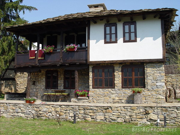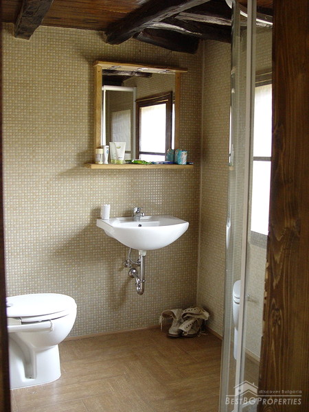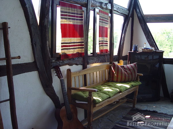 This is a gorgeous newly built house, finished in the Old Bulgarian Renaissance style, but in the same time consistent with the modern lifestyle. It is fully furnished, with a fireplace, barbecue, bathroom and full kitchen equipment. The house is on 2 floors with a lovely courtyard, terraced on two levels with garden lighting and wonderful view, excellent condition. The yard is 1000 sq m and includes a small summer house. It was a former barn determined uniquely, as a place to prepare culinary delights and entertainment.