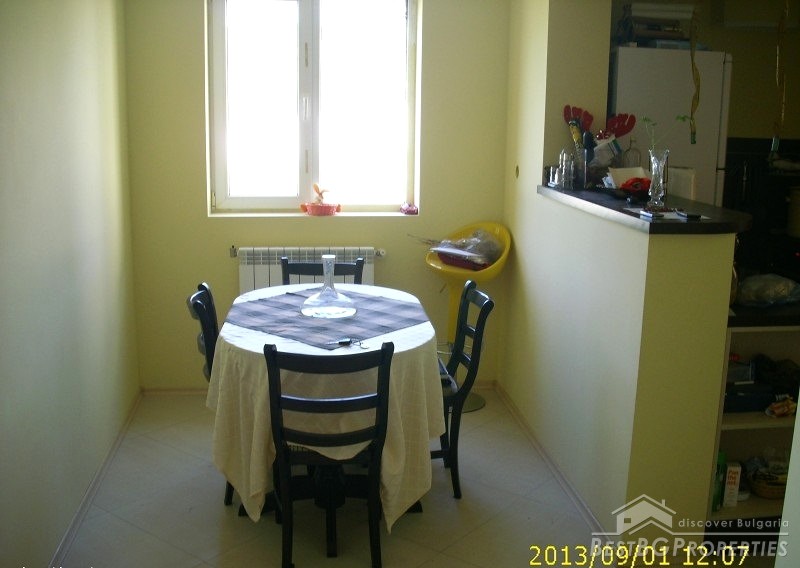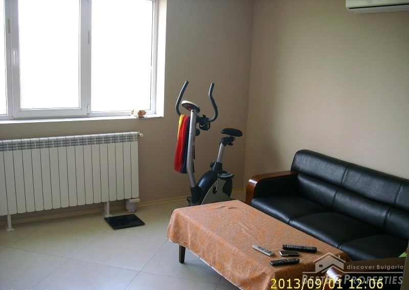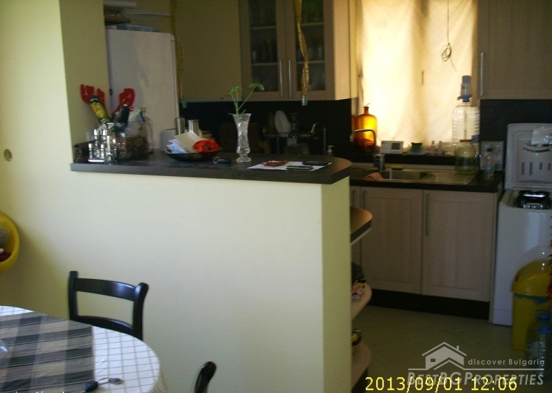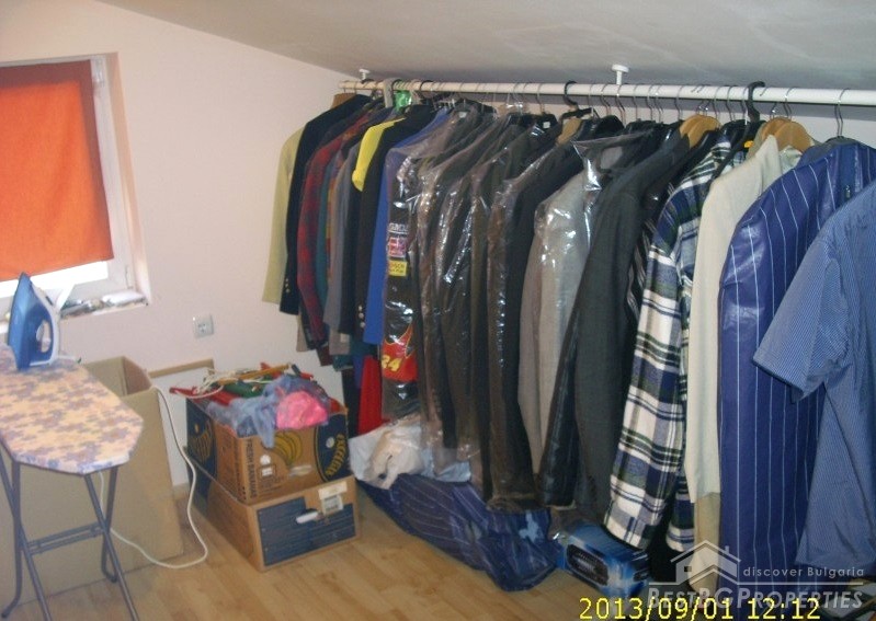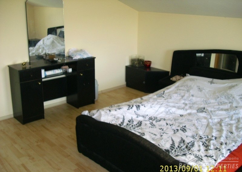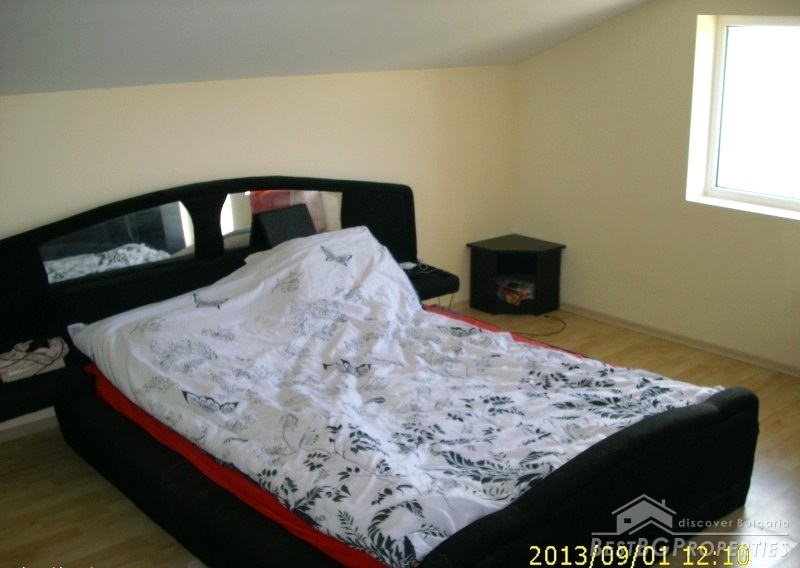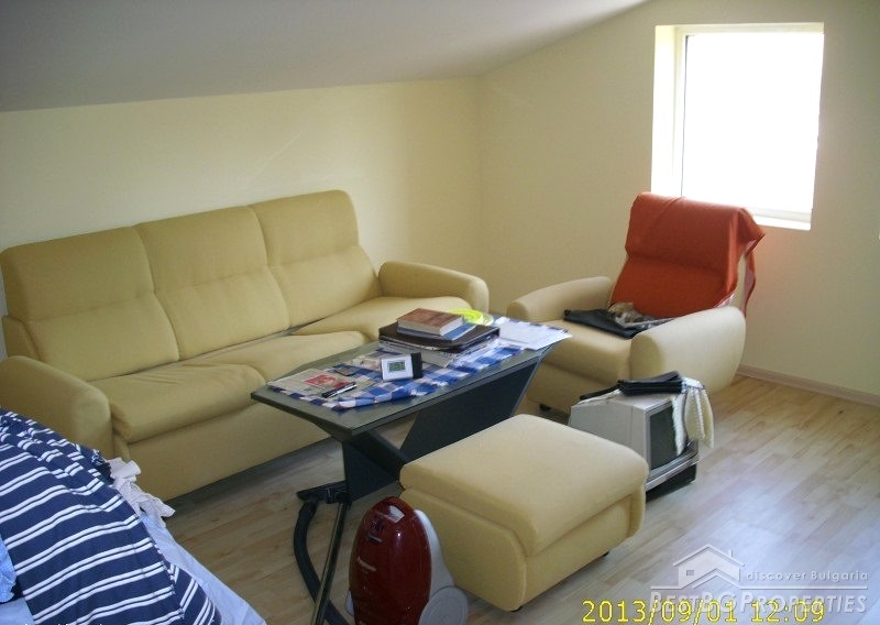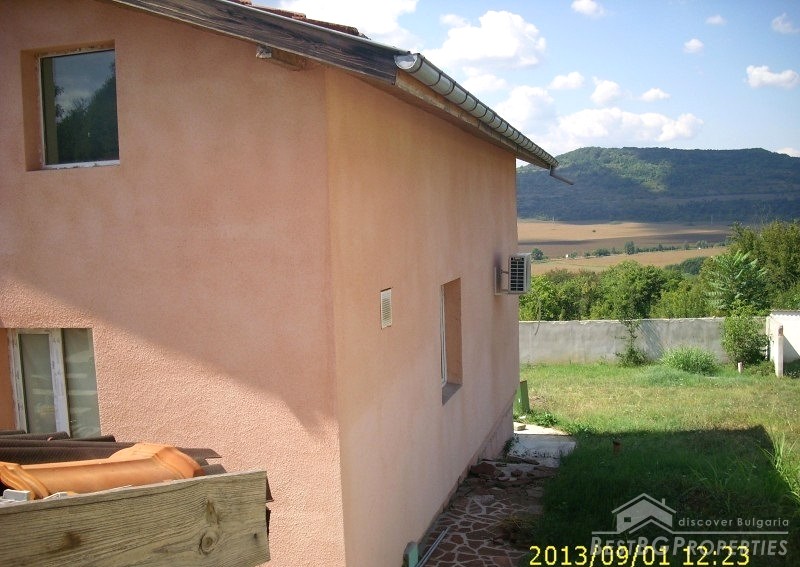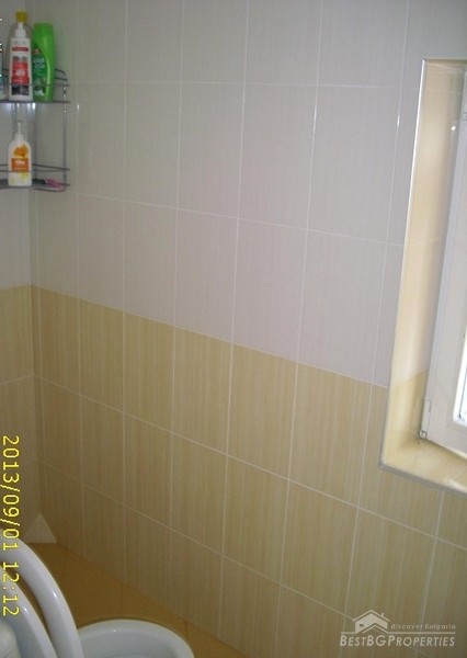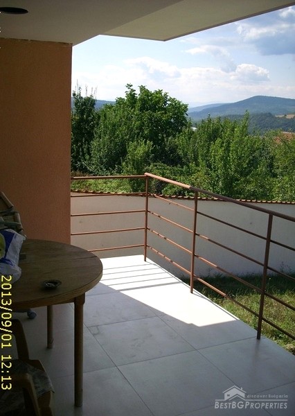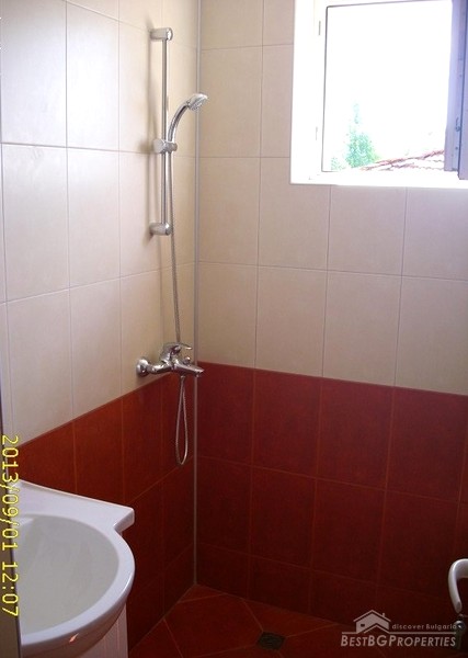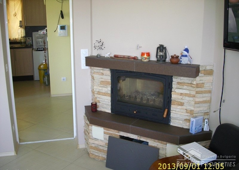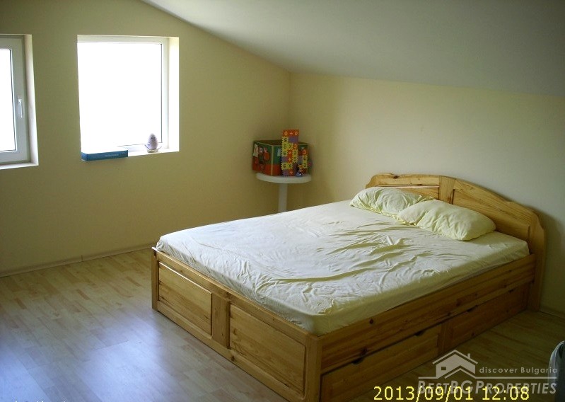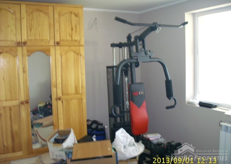 The house is new construction, fully finished and ready to move in. It benefits with internal and external insulation, central heating, fireplace, air conditioning. The house is on two floors with total living area of 200 sq m. The distribution of the premises in side is as fallows: on the first floor there is a tiled kitchen, living room, guest room, gym, office, bathroom and a toilet. The second floor consists of a living room, two bedrooms, dressing room, bathroom, and a terrace with nice views. There is also a premise for the central heating - 18 sq m. The house is equipped with its own cleaning plant for the wastewaters. It is offered fully furnished. The yard is with total area of 700 Sq m, surrounded by a fence.