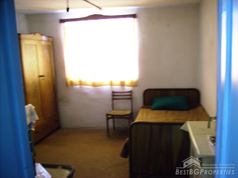 The house has total living area of 180 sq m and has the fallowing distribution of the premises: first floor - corridor, living room, and two basements suitable to be used as a tavern. On the second floor there is a corridor, living room and two bedrooms. The house is built on a plot of land with size 1250 sq m. In the yard there is a summer kitchen and an additional single-storied agricultural outbuilding with size around 100 sq m. There is also a galvanized construction for a glasshouse - 240 m2
