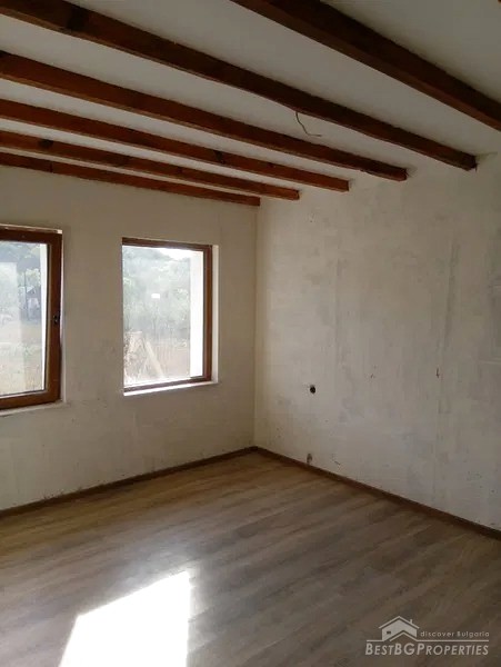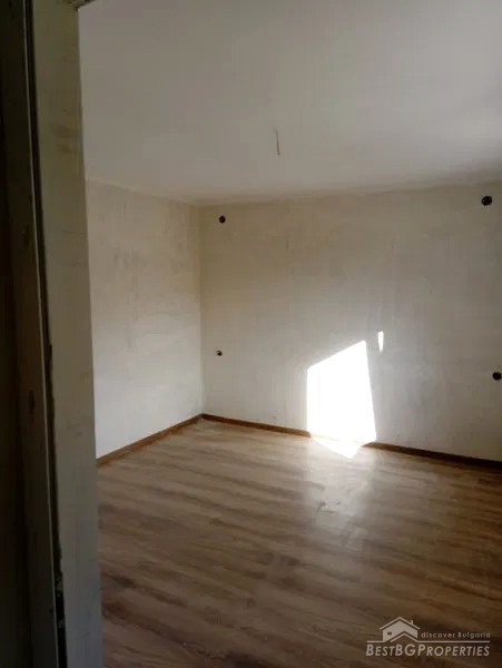 The house comes with partial final finishing. It has plastered walls and ceilings, parquet floors in the living premises, granite and faience in the hallway and the bathroom. Installed PVC windows and doors. The walls are double filled with insulation.