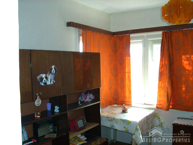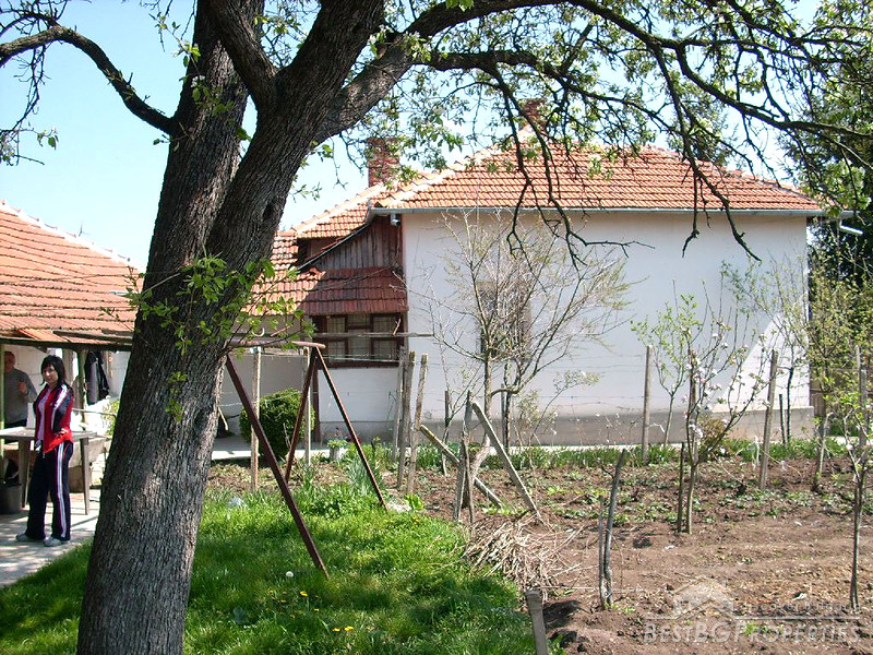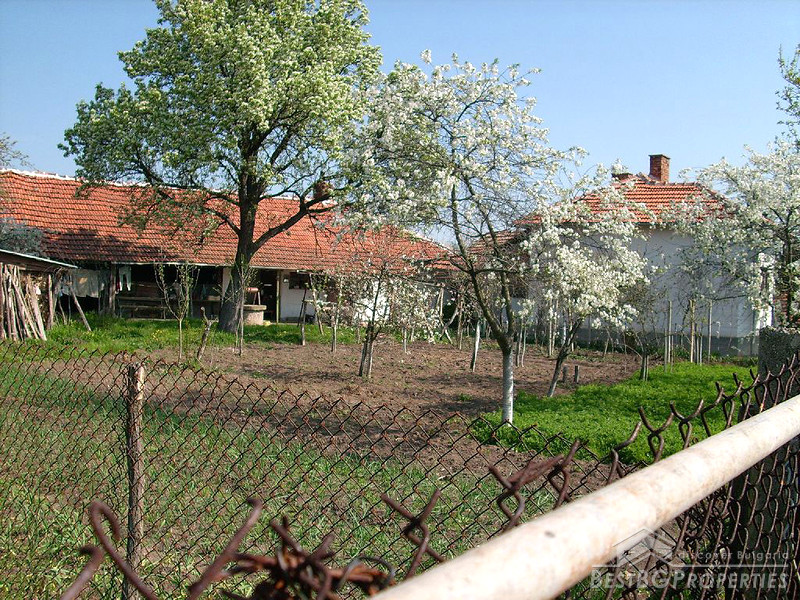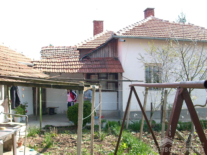 This is a property located in a quiet village in the north western Bulgaria part of Montana Province. It is close to Danube River and the Romanian border. The distance to Sofia is 105 km. The town of Montana is 24 km away. The region is rich in archeological monuments from 8th - 6th B.C. The property consists of a house, additional buildings used for summer kitchen, storage and a big yard planted with many fruit trees. The house is 95 sq. m. in size, consists of corridor, closet, living room (6.80m x 3.70m), 2 bedrooms and a kitchen. The house is fully furnished. There is a sofa in the living room, a small table, sewing machine, cupboards, and cabinet. In the bedrooms there is a wardrobe, table, nightstand, big double bed and chairs, curtains on the windows. There are also pillows and blankets. The other buildings in the yard are old and need some renovations. The summer kitchen is 34 sq m in size, the storage is 100 sq m with electricity provided. The plot is 1500 in size. The yard is beautifully landscaped with many fruit trees, different types of vegetables and green grass. In the yard there is also a well. Drinkable water and water pipes are provided, also electricity and phone. The whole property is surrounded by a metal fence.
