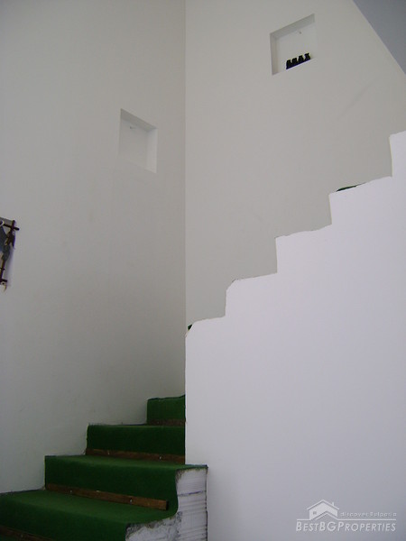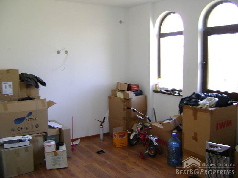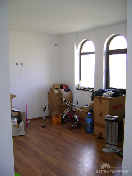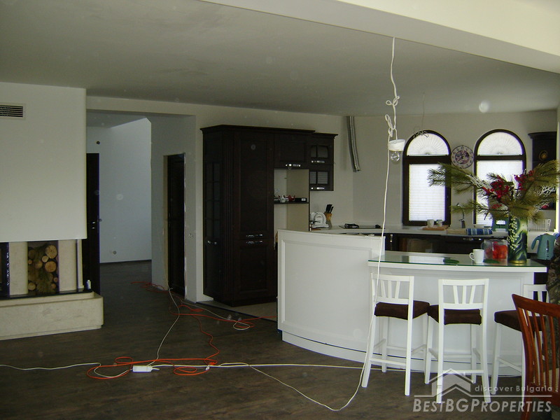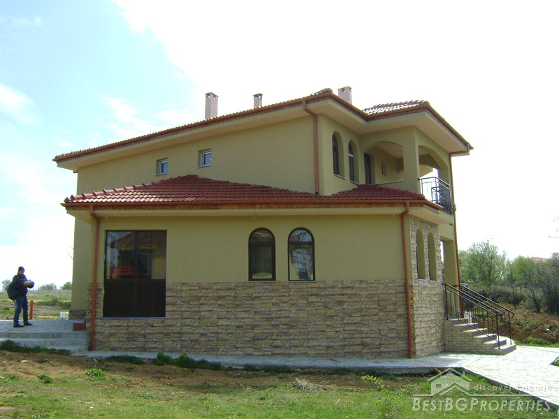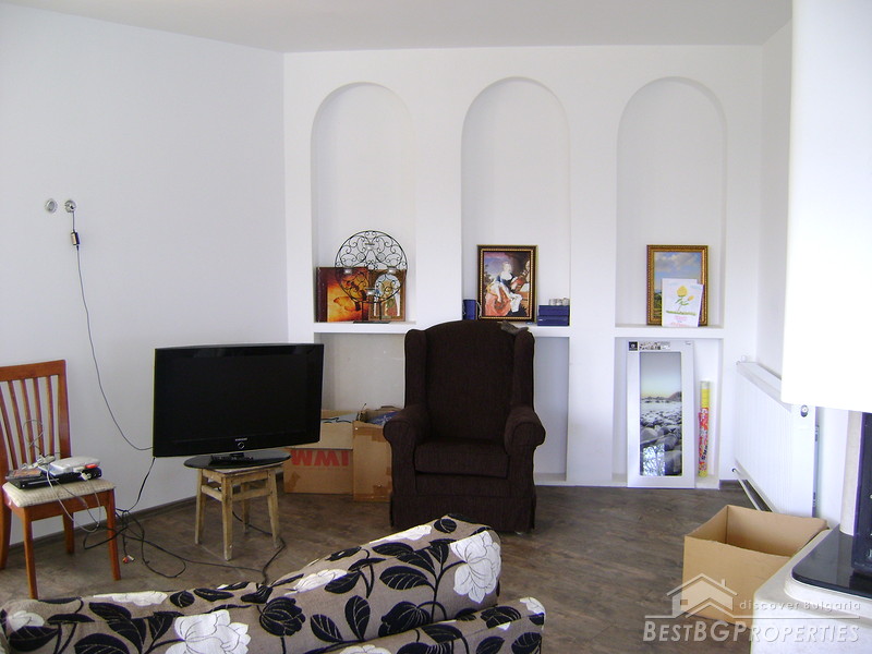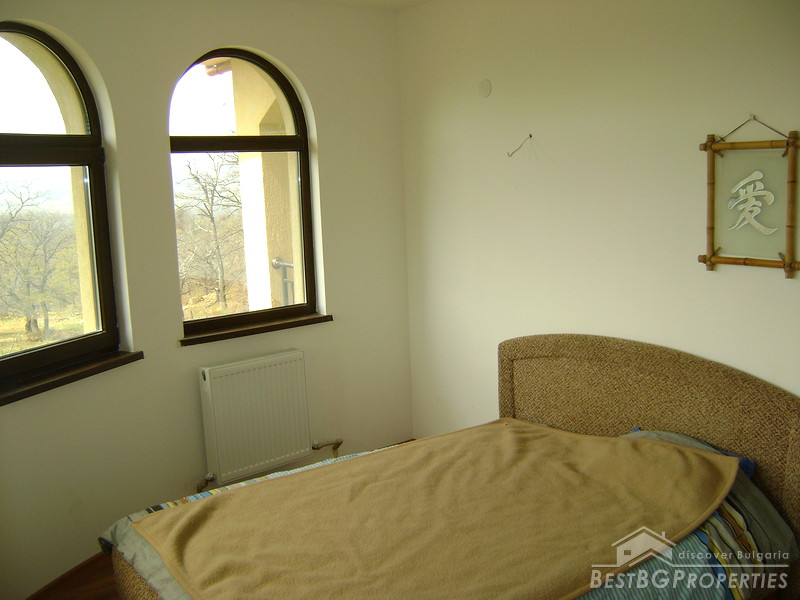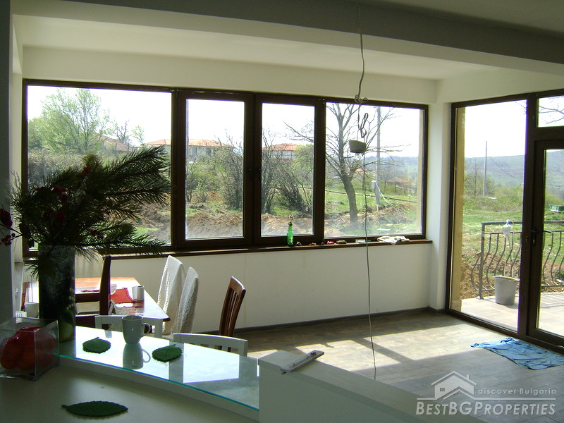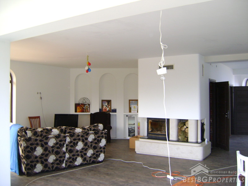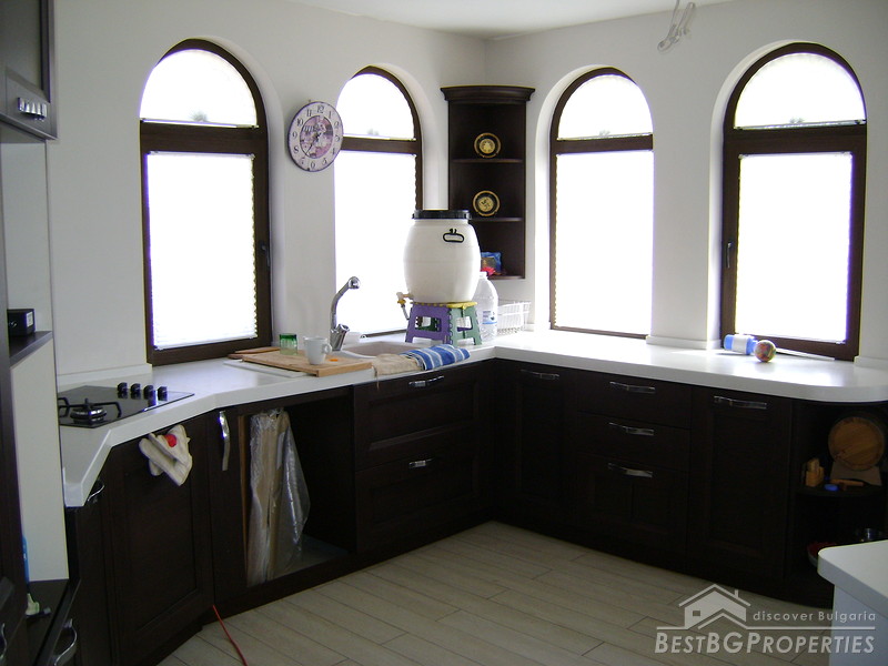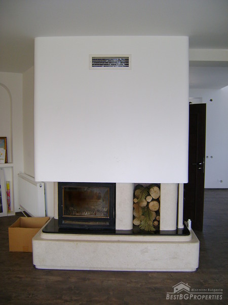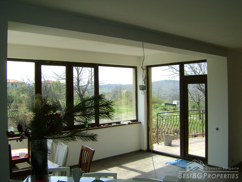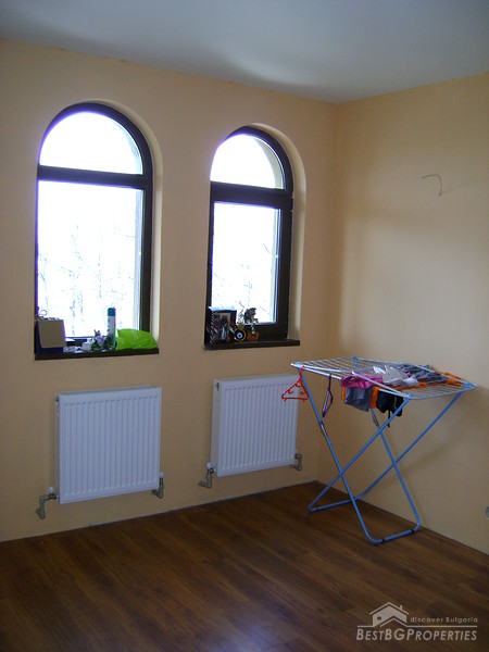 The property consists of a newly built two-story house with total living area of 240 sq m and a spacious plot of land with size 1500 sq m. There is an option to purchase less land if needed. The house has the fallowing distribution of the premises: first floor - one bedroom, living room with kitchen, bathroom with WC, outside verandah, outside laundry premise, fireplace, full kitchen furniture and equipment "Martineli". Second floor comprises three bedrooms, two balconies with awesome views one of which is shared with the other rooms, two WCs and one bathroom. There is also a separate outside boiler premise. The house has a central heating boiler on wood and coal. The property is for sale as you see in on the photos - completely finished and partly equipped and furnished.