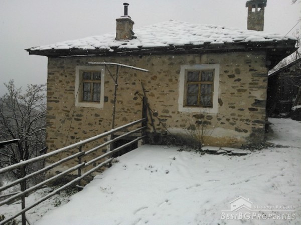 The property is situated in a small, quiet and beautiful Rhodope village. The house is stone-built with a separate sanitary premise. It is two storied. On the second floor there are two bedrooms, kitchen and a hallway (about 55 to 60 square meters). On the first floor there are three rooms, a kitchen and a pantry. The house has great view. There is a large yard. In the yard there is another is preserved building - a bakery for making bread, which is very interesting. There is also a fruit garden (approx. 400 sq m). The house is furnished with old furniture. It is suitable for living. There are beds, stoves, water, electricity, bathroom with WC, clean, tidy and cozy house, but not new. There is also a barn, but it has collapsed as shown on the pictures. The total living area is 110 sq m and the yard is 500 sq m in size. Neighbors are typical native people - helpful, friendly, good, kind people who can be counted on for anything.