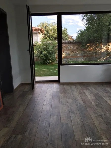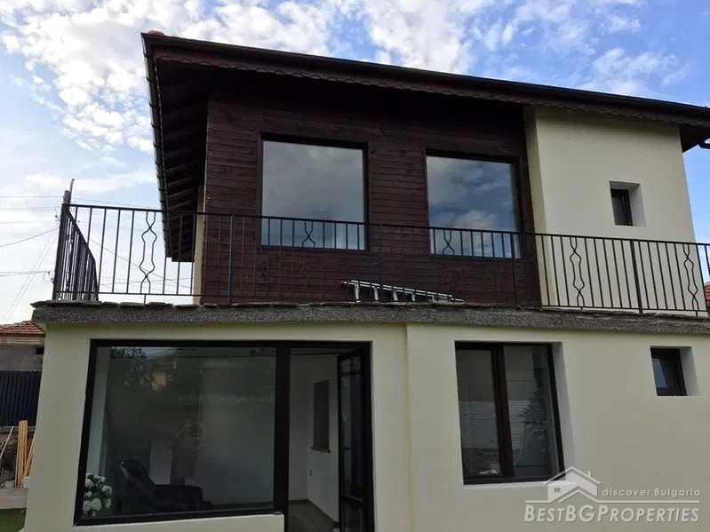 The house is in the center of the village. It is on two floors, each of which is 50 sq m. The house is completely renovated - new roof, thermal insulation, new windows, new electrical installation and plumbing, brand new bathrooms, new flooring, newly painted. It is sold partially furnished.