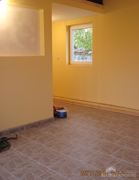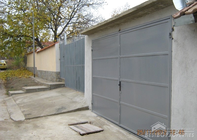 The property consists of a single-storey house and a spacious yard. The house has total living area of 133 sq m. It is a new brick building with two bedrooms, living room, kitchen, 2 bathrooms, 2 indoor toilets, terrace, garage, barbecue with a separate kitchen and toilet. The yard has area of 933 sq m. It is well maintained and planted with fruit trees and vines. Around the property there is a massive fence. In the garden there is a summerhouse. There are all communications - newly established plumbing, electricity. Under the house there is an authentic deep basement.