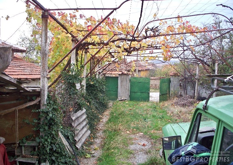 The house consists of 4 rooms and 2 terraces having total living area of 85 sq m. The property comes with a large spacious yard - 850 sq m. In it there is 180 sq m of vineyard and a big garden - 450 sq m. There is also a nice garage and several additional outbuildings for animals (2 premises for pigs, hen house, a barn and two sheds). The house itself also has two basement premises and 2 closets. The bathroom and toilet are outside.