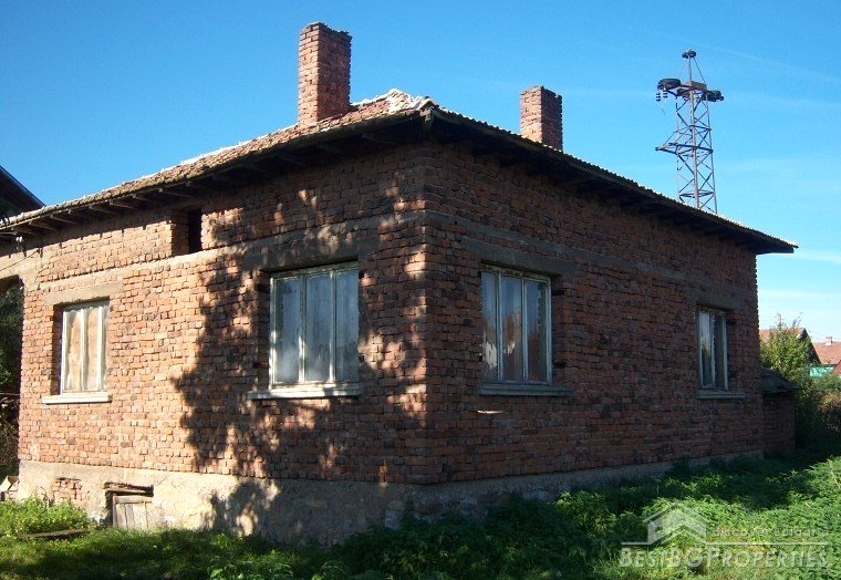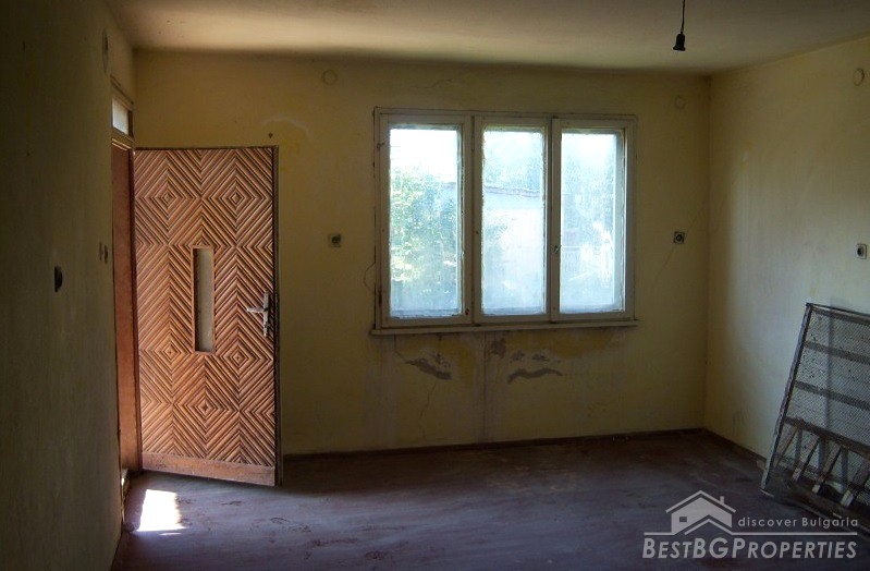 The house has total living area of 80 sq m distributed over one floor. It consists of three rooms and a kitchen. Under them there is a stone basement. It is a solid, brick construction, generally in good condition, but in need of renovation before you could move in. The house was finished in 1989.