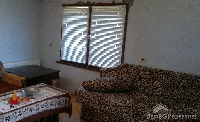 The house has two floors. It consists of a living room, three bedroom, kitchen box, WC and bathroom, verandah and a large balcony. In the yard there is an additional solid outbuilding and an outside WC.