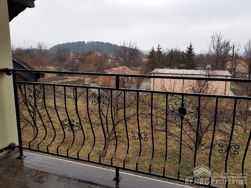 The house has total living area of 91 sq m and a garden of 700 sq m. It comprises with two floors. The first floor consists of three rooms and a bathroom. The second floor has one large room, which can be split in to two smaller premises. This room is equipped with large French windows opening to a terrace with incredible panorama towards a forest and the mountain of Rila.
