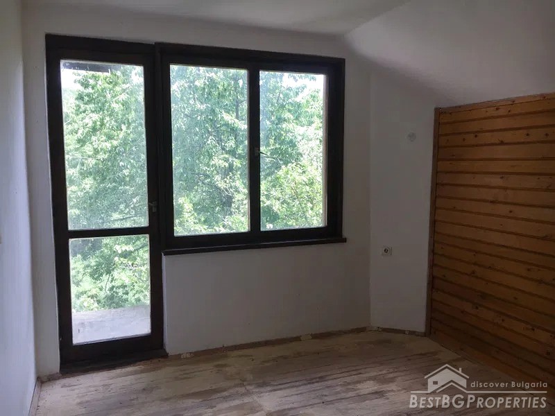The layout inside the building is very functional and convenient. The first floor consists of two rooms, a corridor, a toilet (not finished) and a terrace that leads to the yard. The second floor also consists of two rooms (bedrooms) sharing one terrace, and there is also a corridor and a toilet. The house is supplied with electricity and water.