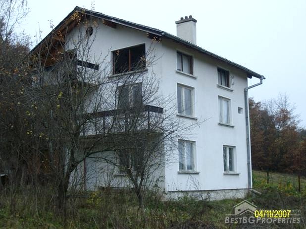 The house was built in 1990 year. It is brick made with reinforced concrete plates. The total living area is 270 sq m distributed between three residential floors. The first floor consists of a garage, premise for a bathroom with WC and two rooms. On the second floor there are three rooms + a sanitary premise and a balcony. The third floor comprises with three rooms, lounge and a balcony. There is also a slopped attic premises which is used as storage. Inner staircase connects all floors. There are all communications - electricity is 50 meters away and the water is from a central pipeline inside the house. The property is accessible by a 100 meter dirt road.